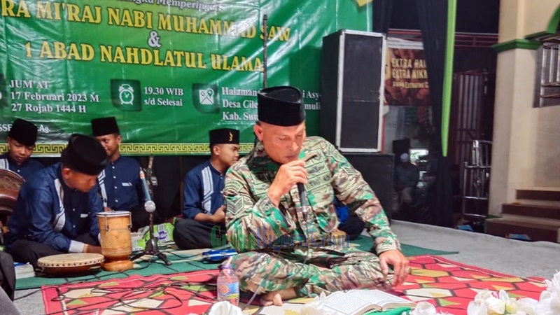 grahabignews.com, Sumedang- Babinsa Koramil 1004/Tanjungsari Kodim 0610/Sumedang Sertu Madsufi mengahadiri pengajian isro mi’raj Nabi Muhamad SAW, dan memperingati 1 abad Nahdatul Ulama, bertempat Di Dusun Cilembu Rt 01/08 Desa Cilembu Kecamatan Pamulihan Kabupaten Sumedang
