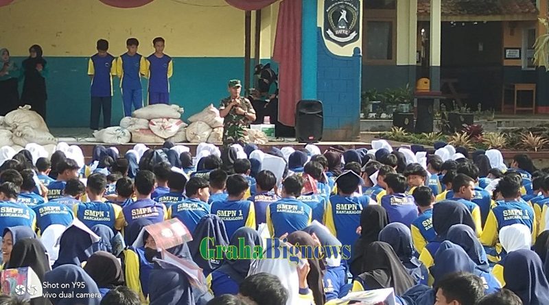Grahabignews.com.Sumedang – Guna menanamkan sikap disiplin dan bertanggung jawab serta membentuk karakter kepada Siswa Siswi SMP agar mereka belajar menghargai tentang produk hasil tanaman dan bertanggung jawab terhadap lingkungan sekitar, Danramil 1006/Rancakalong Kodim 0610/Sumedang memberikan edukasi tentang ketahanan pangan.