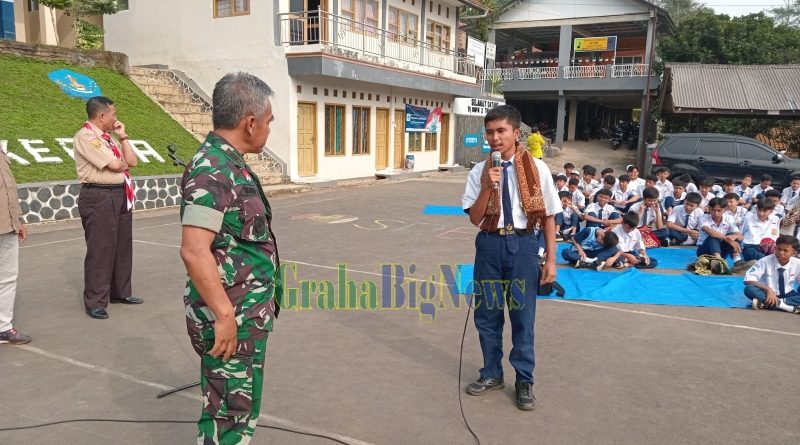 grahabignews.com, Sumedang – Dalam rangka membentuk karakter cinta tanah air sejak dini dan sebagai upaya preventif tawuran serta bahaya narkoba di kalangan pelajar, Koramil 1003/Tanjungkerta Kodim 0610/Sumedang memberikan pembekalan Wawasan Kebangsaan Cinta Tanah Air kepada siswa siswi SMPN 2 Tanjungkerta.