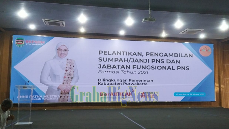 grahabignews.com, Purwakarta-Melengkapi struktur kepegawaian di lingkungan Pemerintah Kabupaten Purwakarta, Bupati Purwakarta Anne Ratna Mustika melantik dan mengambil sumpah jabatan sebanyak 381 Pejabat Fungsional dan Pejabat Pelaksana di Bale Sawala Yudhistira, Selasa (28/03/2023).