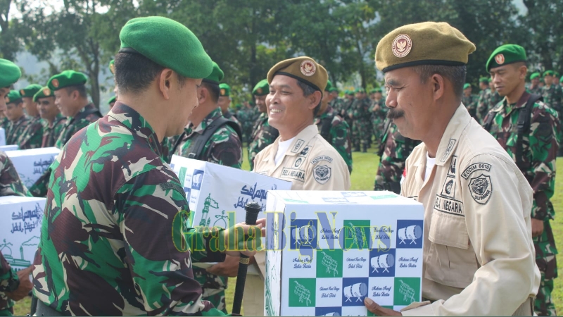 grahabignews.com, Sumedang – Dandim Sumedang membagikan bingkisan lebaran kepada Prajurit dan PNS Kodim 0610/Smd, di lapangan apel upacara Makodim Sumedang, Senin (17/04).