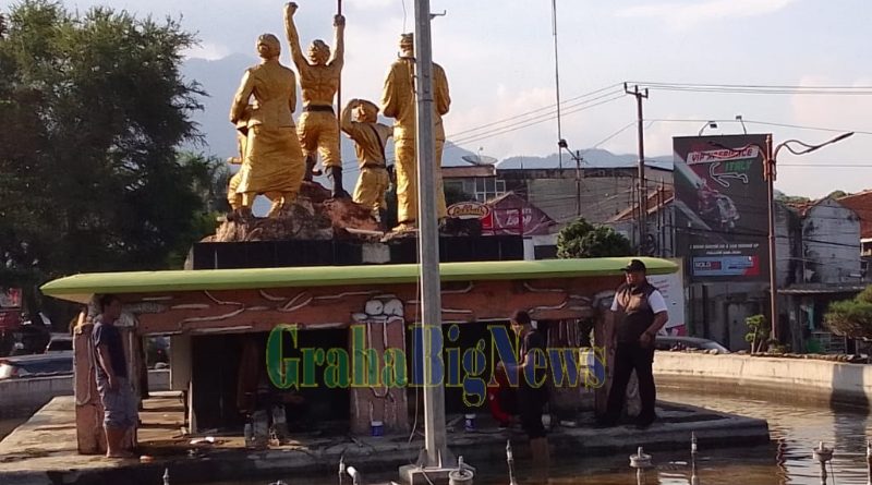 “Hari ini, kami menata di bundaran Simpang lima, berupa penanaman tanaman hias serta memperbaiki air mancur yang rusak,” jelas dia.