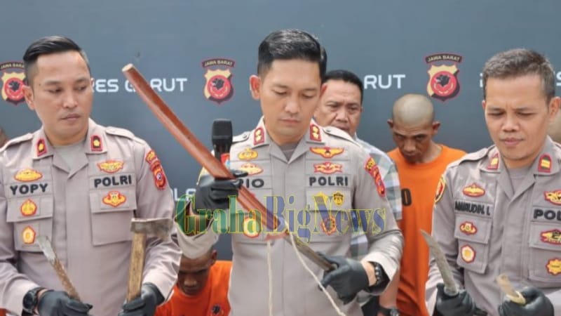 grahabignews.com, Garut – Polres Garut, ungkap pelaku pencurian hewan ternak dalam Konferensi Pers, Selasa (02/05) di Mako Polres Garut.