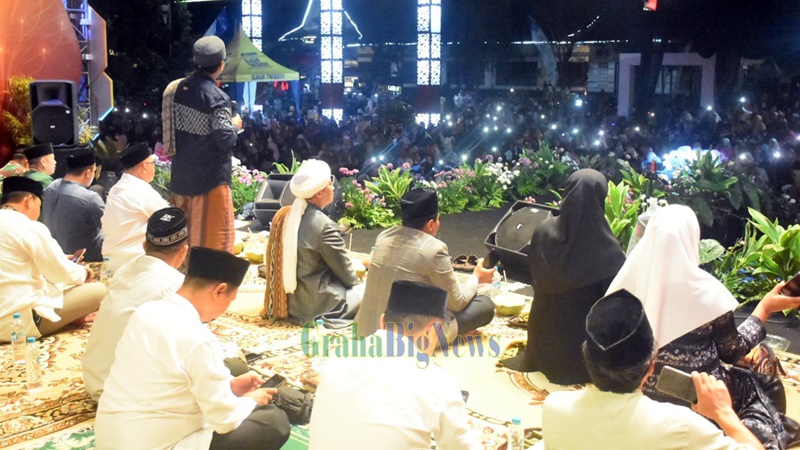 grahabignews.com, Sumedang,- Kamis malam (11/5), ribuan jemaah baik laki-laki maupun perempuan, tua muda hingga anak-anak memenuhi Alun-alun Sumedang dalam acara “Sumedang Bershalawat” yang digelar Pemerintah Kabupaten Sumedang masih dalam rangkaian peringatan Hari Jadi ke-445 Sumedang.