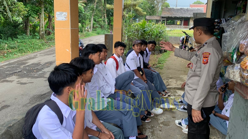 Menindaklanjuti hal tersebut Bhabinkamtibmas Polsek Bojong, Polres Purwakarta, Diki Nurul menyambangi pelajar Sekolah Menengah Atas yang sedang berada di depan sekolah.