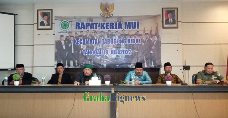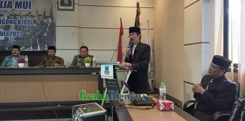 Grahabignews.com, Garut – Tepat pukul 11.59 WIB acara selanjutnya adalah sambutan dari Ketua MUI Kabupaten Garut, K.H. Sirojul Munir yang memberikan apresiasi bahwa baru ini MUI Kecamatan Tarkid yang mengundang dirinya pada acara Raker di Aula Tarkid Jln. Pembangunan, Rabu (19/07/2023).