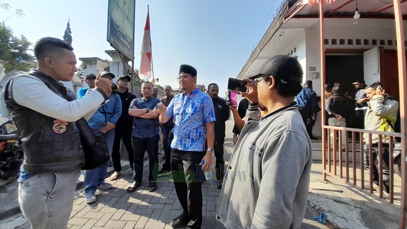 Dirut) PDAM Tirta Intan Garut, Dr. H. Aja Rowokarim memenuhi sidang gugatan konsumen tersebut di Kantor BPSK, Jl. Tenjolaya no 30 Garut, Jum’at (01/09). (Foto: Istimewa - grahabignews.com)