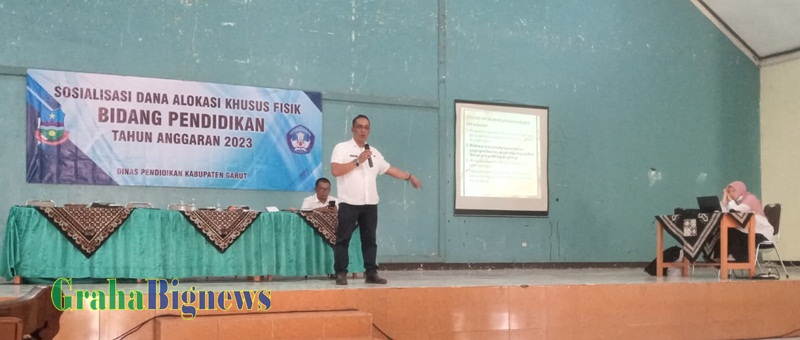 Pengawasan Pelaksanaan Kegiatan fisik Bangunan merupakan penjelasan yang disampaikan oleh Asep Suparman, M.Si dari Irban 2 Inspektorat Kabupaten Garut dalam acara sosialisasi Dana Alokasi Khusus (DAK) Fisik Tahun Anggaran 2023 di Aula Musadaddiyah Jl. Mayor Syamsu, Rabu (06/09/2023).