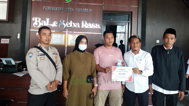 Grahabignews.com, Purwakarta – Pemerintah Desa (Pemdes) Sukatani, Kecamatan Sukatani, Kabupaten Purwakarta mewajibkan bagi setiap Calon pengantin (Catin) di wilayah tersebut untuk menjalani tes urine, guna melengkapi persyaratan administrasi untuk mendapatkan buku nikah dan tercatat secara resmi oleh negara, siap rumah tangga dengan bebas narkoba, kualitas hidup lebih sehat.