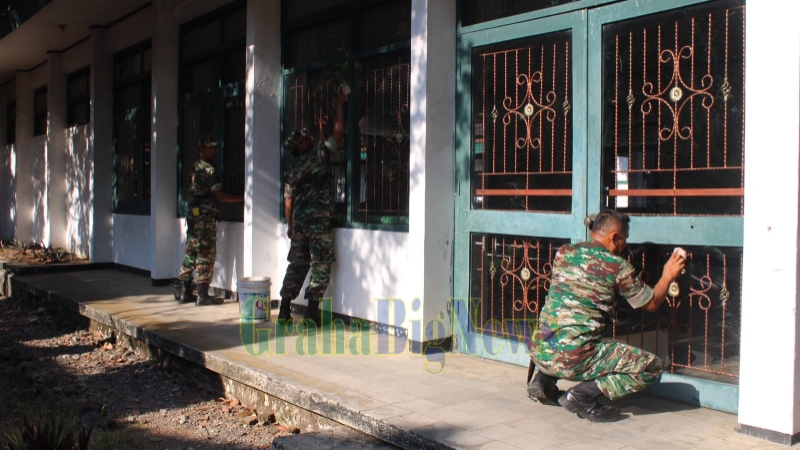 grahabignews, Sumedang – Kodim 0610/Sumedang, menggelar kegiatan Karya Bhakti membersihkan lingkungan Komplek Keraton Sumedang Larang, bertempat di halaman Pusaka Museum Sri Manganti Sumedang Jl. Prabu Geusan Ulun Kelurahan Regol Wetan Kecamatan Sumedang Selatan, Jum’at (29/09).