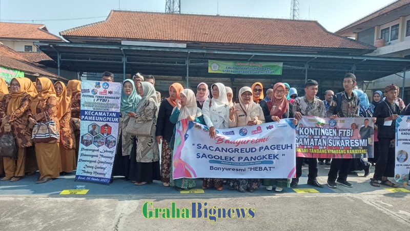 Grahabignews.com. Garut – Tumpah ruah penuh semangat dan sumringah semua peserta FTBI dari masing-masing kontingen, dari mulai Korwil, K2S, Ketua PGRI, dan para peserta didik dari 42 Kecamatan siap bertanding beradu kebolehan dari 7 jenis materi lomba yaitu Borangan, Carpon, Biantara Sunda, Ngadongeng, Pupuh, Maca Sajak, Nulis dan Baca Aksara Sunda. Acara dilaksanakan di SMK Ciledug Al-Musadaddiyah Garut Jl. Mayor Syamsu, Rabu (04/10/2023).