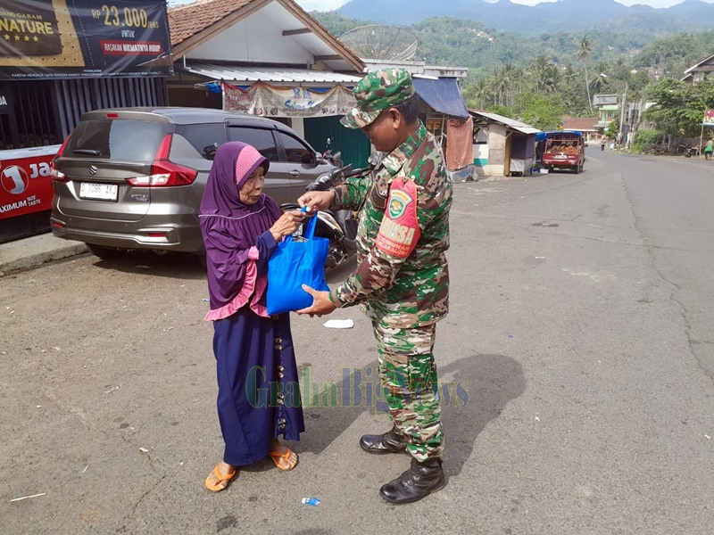 Grahabignews, Sumedang – Berbagi kasih terus di alirkan ke warga masyarakat, Bintara Pembina Desa (Babinsa)1006/Rancakalong Kodim 0610/Smd Serma Tahroma Wijaya, memimpin langsung Jum’at berkah Pembagian 30 paket Sembako kepada warga kurang mampu dan janda tua.