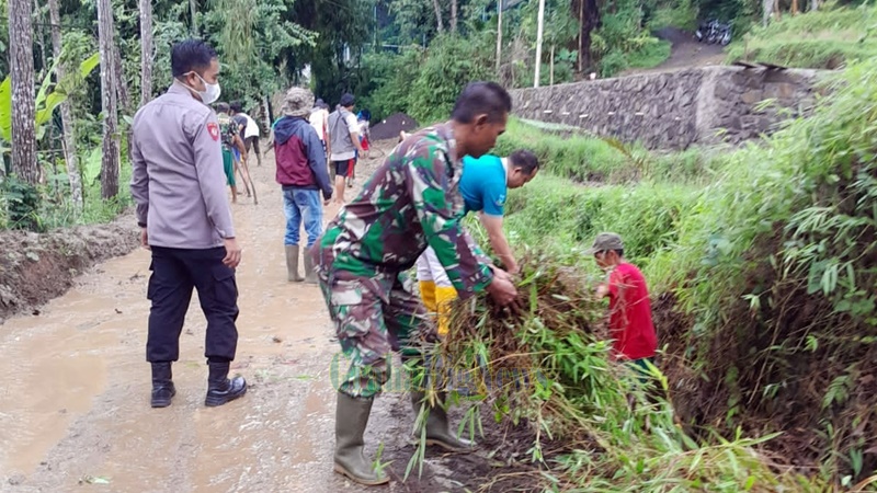 “kegiatan ini sebagai bentuk kepedulian TNI bersama Polisi kepada masyarakat bahu membahu membersihkan saluran air yang tersumbat sehingga nantinya air yang mengalir dapat dengan lancar” ungkap Cacu.