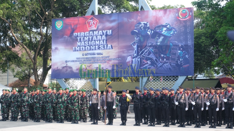 Grahabignews, Garut – Upacara Peringatan Hari Ulang Tahun (HUT) ke-79 Tentara Nasional Indonesia (TNI) tahun 2024 berlangsung penuh khidmat dan meriah di Lapangan Oto Iskandar Di Nata, Kecamatan Garut Kota, Kabupaten Garut, Sabtu (5/10).