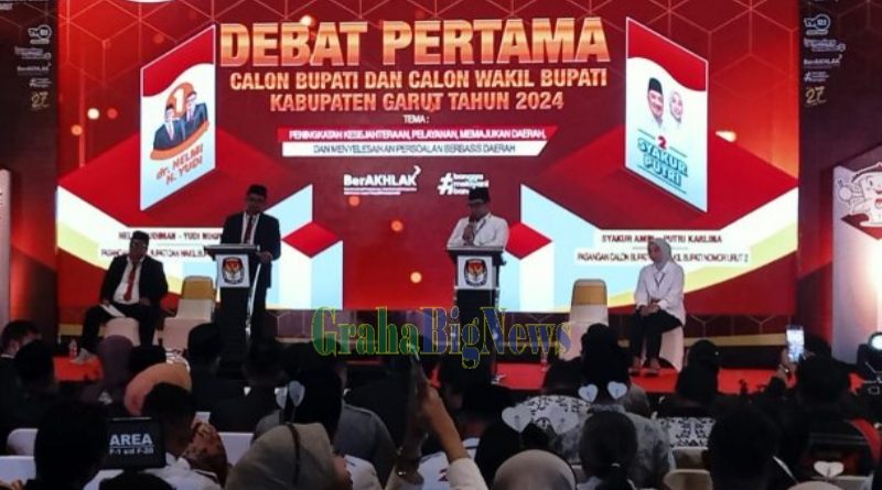 Grahabignews, Garut – Debat publik perdana calon Bupati dan Wakil Bupati Garut Priode 2024-2029 yang di gelar Komisi Pemilihan Umum (KPU) Kab. Garut, berlangsung sukses di Hotel Santika, Jl. Raya Cipanas Baru, Kec. Tarogong Kaler, Rabu (23/10).
