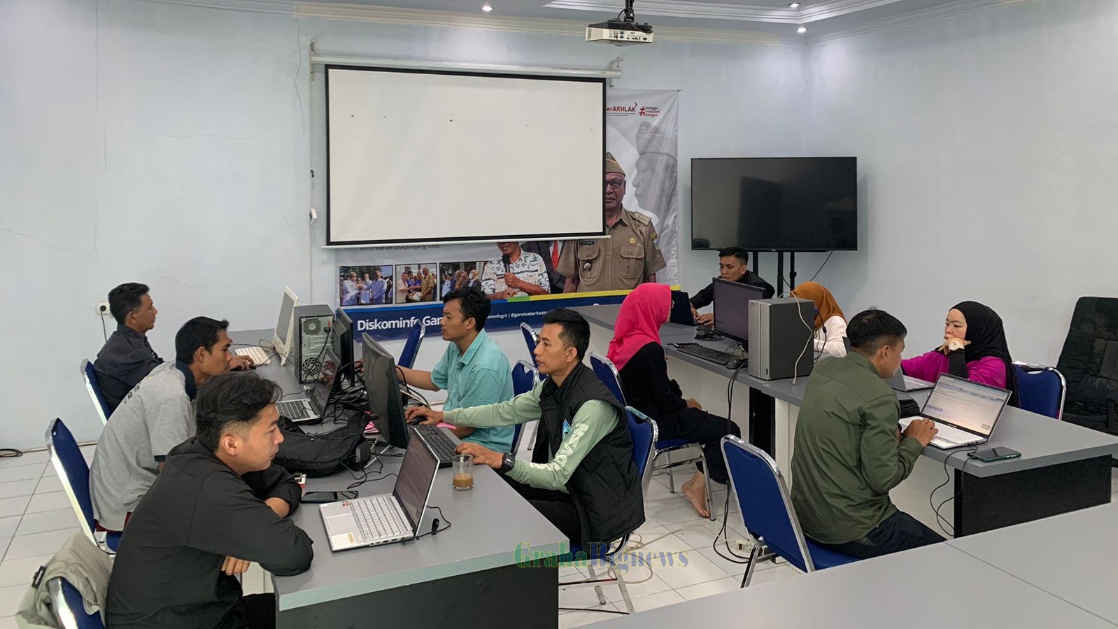 GrahaBigNews.Com,Garut – Dinas Komunikasi dan Informatika (Diskominfo) Kabupaten Garut memfasilitasi simulasi Computer Assisted Test (CAT) bagi 11 pegawai honorer yang akan mengikuti seleksi Pegawai Pemerintah dengan Perjanjian Kerja (PPPK) tahap pertama tahun 2024. Kegiatan ini berlangsung di Gedung Public Information Center (PIC) Diskominfo Kabupaten Garut, Jalan Pembangunan, Kecamatan Tarogong Kidul, Kamis (21/11/2024). Simulasi tersebut dipantau langsung oleh Pelaksana Tugas (Plt) Sekretaris Diskominfo, Egga Mahessa Suardi.