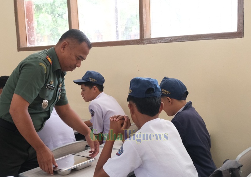GrahaBigNews.Com. Garut – Kabupaten Garut melalui Kodim 0611/Garut mulai menyalurkan Program Makan Bergizi Gratis (MBG) yang dilaksanakan di SMPN 6 Garut, Jalan Bratayudha, Kecamatan Garut Kota, Kabupaten Garut, Senin (6/1/2025).