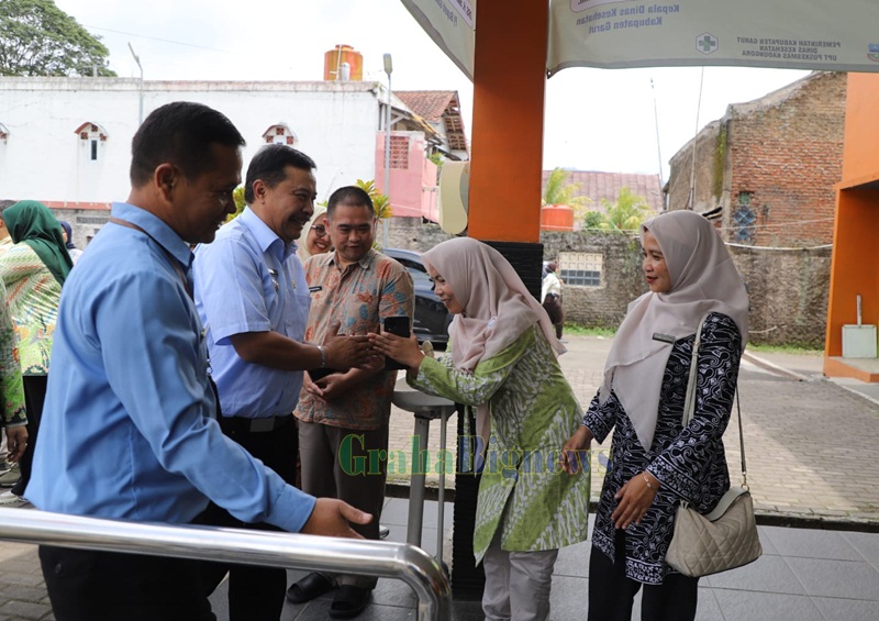Penjabat Bupati Garut, Barnas Adjidin lakukan kunjungan ke Pelayanan publik Puskesmas Kadungora di Jl Raya Kadungora No. 243, Kabupaten Garut, Jum'at (7/2/2025). (Foto : Deni Seftiana/ Ilham Kautsar/ Diskominfo Kab. Garut-grahabignews.com)