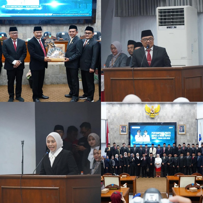 “Dan itu bisa terealisasi kalau kita semua kompak bisa bekerja bersama-sama, saling membantu, saling mengingatkan, dan saling memberikan insight, memberikan pandangan-pandangan yang baik,” kata Syakur dalam pidato perdananya di hadapan Rapat Paripurna DPRD Kabupaten Garut dalam rangka Penyampaian Pidato Bupati Terpilih yang berlangsung di Ruang Rapat Paripurna DPRD Kabupaten Garut, Jalan Patriot, Kecamatan Tarogong Kidul, Kamis (20/2/2025). Sebelum digelar rapat paripurna, juga dilakukan Serah Terima Jabatan (Sertijab) dari Penjabat (Pj) Bupati Garut, Barnas Adjidin, kepada Bupati Garut terpilih, Abdusy Syakur Amin.