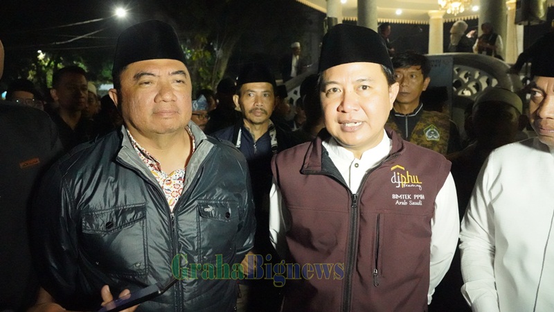 Grahabignews.com.Garut – Bupati Garut, Abdusy Syakur, mendampingi Direktur Jenderal Penyelenggaraan Haji dan Umrah (Dirjen PHU) Kementerian Agama Republik Indonesia, Hilman Latief, melepas 435 jemaah haji dan 7 orang petugas haji dari Kloter 22 Kabupaten Garut yang berlangsung di Halaman Gedung Pendopo, Kecamatan Garut Kota, Kabupaten Garut, Sabtu malam (10/5/2025).