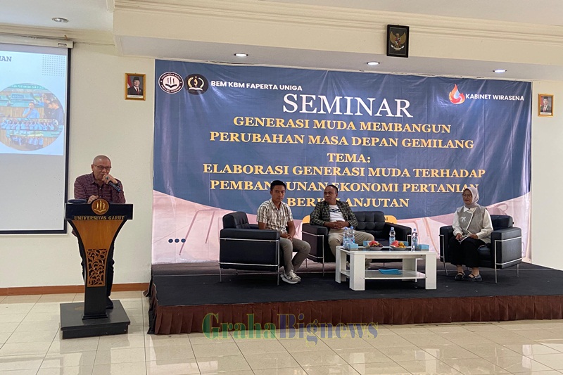 Grahabignews.com.Garut – Universitas Garut menyelenggarakan Seminar Generasi Muda dengan tema “Elaborasi Generasi Muda terhadap Implementasi Pembangunan Ketahanan Pangan Berkelanjutan” yang bertempat di Aula Gedung B Uniga Kampus 1, Kecamatan Tarogong Kaler, Kabupaten Garut, Sabtu (21/6/2025).