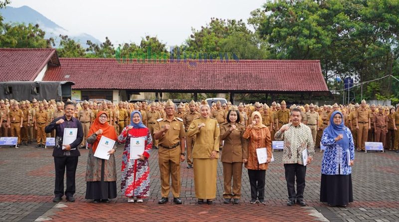 Grahabignews.com.Garut – Wakil Bupati Garut, Putri Karlina, memimpin apel gabungan yang dirangkaikan dengan penyerahan secara simbolis Surat Keputusan (SK) Bupati tentang Pemberhentian Pegawai Negeri Sipil (PNS) yang memasuki Batas Usia Pensiun (BUP) pada November 2025.
