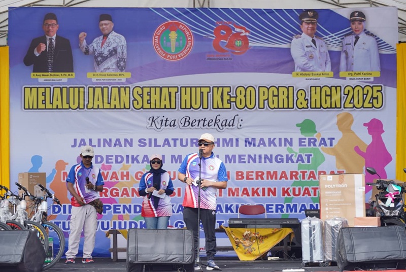 Encep juga menyampaikan ucapan terima kasih atas kehadiran Bupati di tengah kesibukannya, yang menunjukkan perhatian besar terhadap organisasi guru. Ia juga mengapresiasi ribuan simpatisan PGRI yang turut menyemarakkan acara.