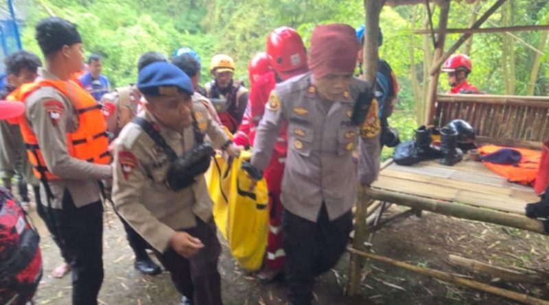 Polsek Cibatu Bersama Tim SAR Evakuasi Korban Tenggelam di Sungai Cimanuk
