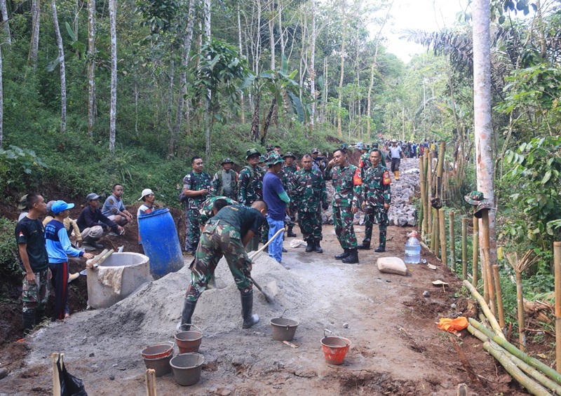Pembangunan jalan sepanjang 1.500 meter tersebut merupakan salah satu sasaran fisik utama dalam program TNI Manunggal Membangun Desa (TMMD) ke-128. Saat peninjauan, Dansatgas bersama anggota TNI dan warga terlihat berjalan menyusuri lokasi pembangunan yang saat ini tengah dalam tahap pengerjaan dengan material batu.
