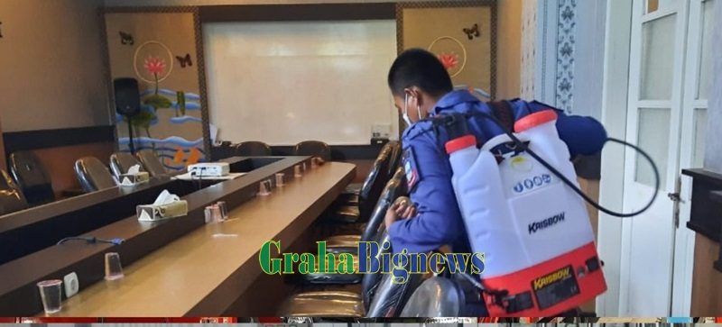 Oleh : Wishnoe Ida Noor Garut – Dinas Pemadam Kebakaran Kabupaten Garut kembali menggelar penyemprotan cairan disinfektan di lingkungan Pendopo